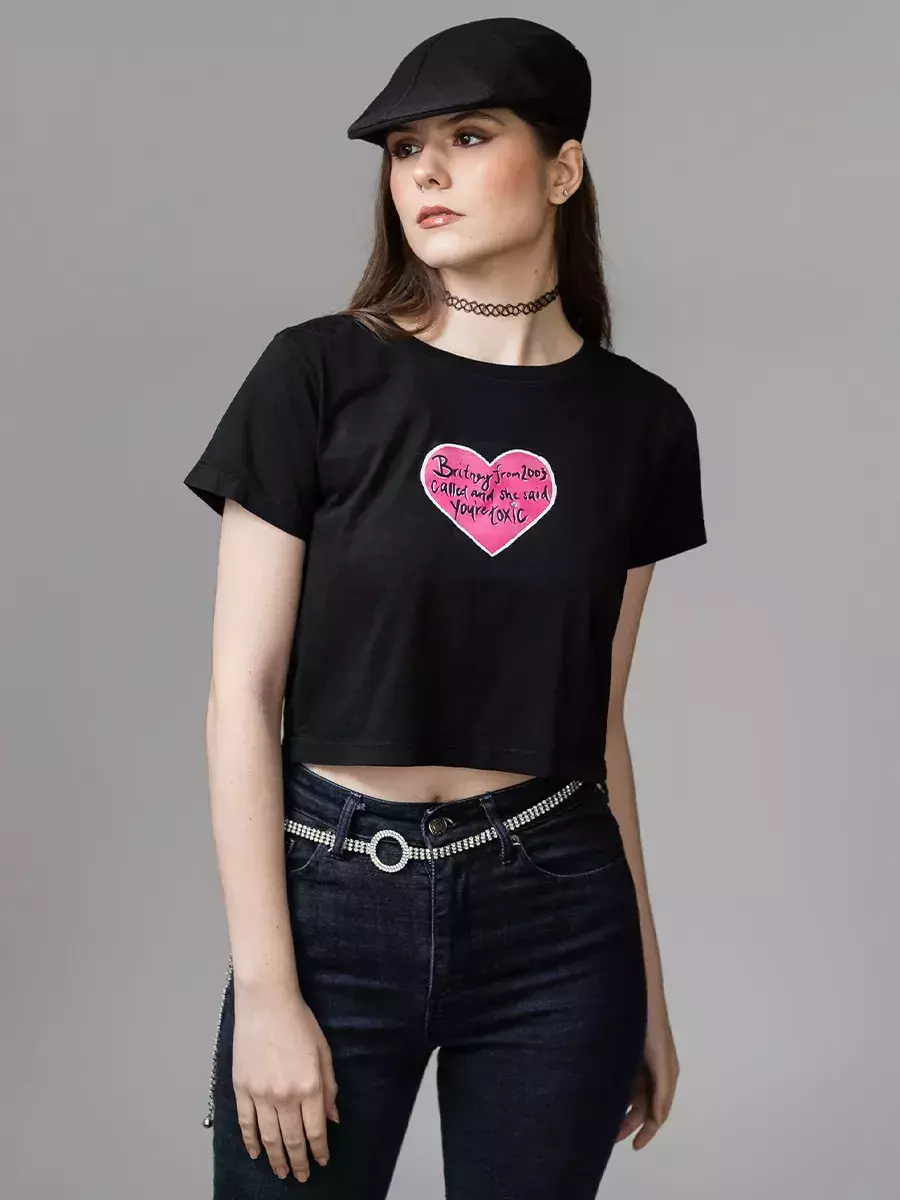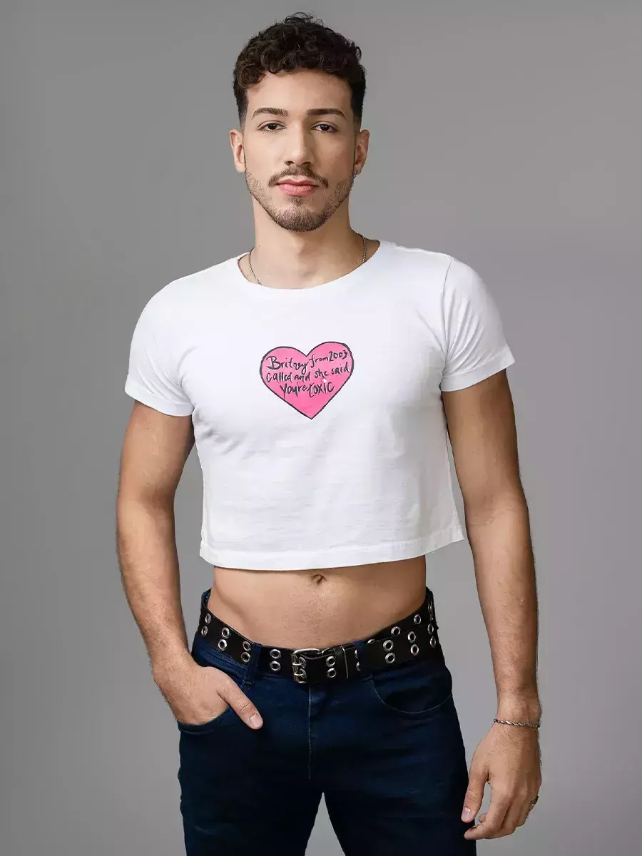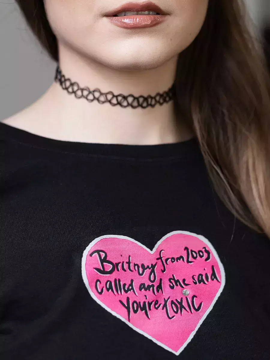 Essa cropped tee é um tributo irreverente ao reinado de Britney Spears, nossa eterna Princesa do Pop. No centro, um coração rosa abriga a declaração “Britney from 2003 called and she said you’re toxic” — um símbolo duplo: de amor eterno pela Britoca e de empoderamento para quem veste. A frase não é só homenagem à música “Toxic” — é uma provocação afiada para quem precisa ouvir que está ultrapassando os limites. O toque final? Um strass pontual substituindo o “i” de “toxic” — um detalhe sutil que funciona como um alerta brilhante: cuidado, aqui a sutileza é tão poderosa quanto o statement. Mais do que uma camiseta, essa peça é um grito fashion: use-a para marcar território, virar o jogo e deixar claro que você não tem medo de responder com humor — e um toque de luxo — às energias tóxicas ao redor.